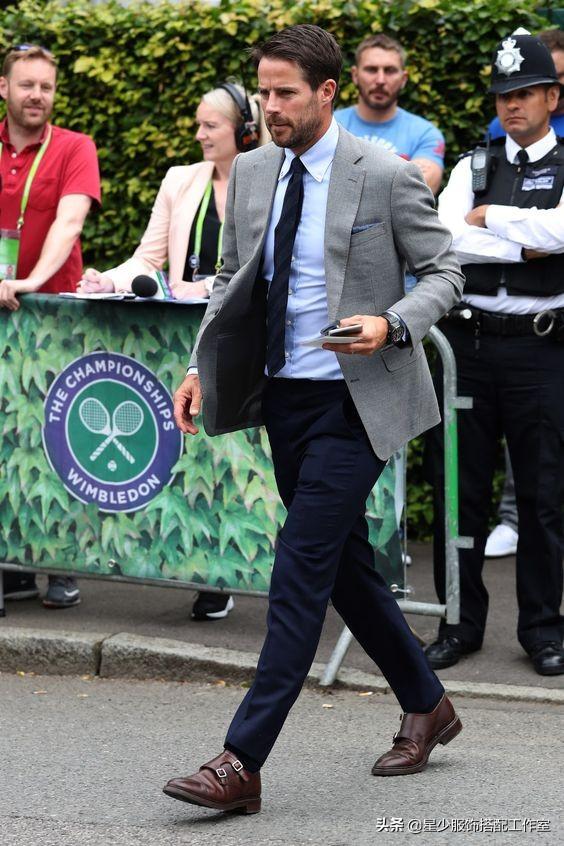 第三天与第四天可以将两套西装的上下装交叉互搭,也就是蓝色西装外套搭配灰色西裤!