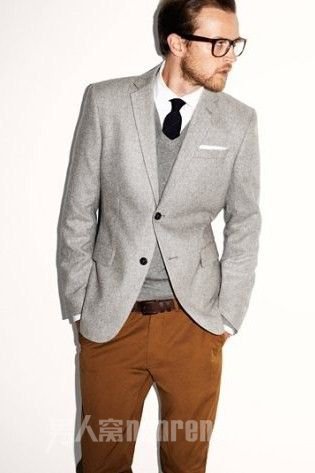 领带变得粗苯,不够飘逸,而且会把西服的倒三角领口堵得很满,视觉上不透气。所以我强烈建议戴窄条领带,这也算一种复古。