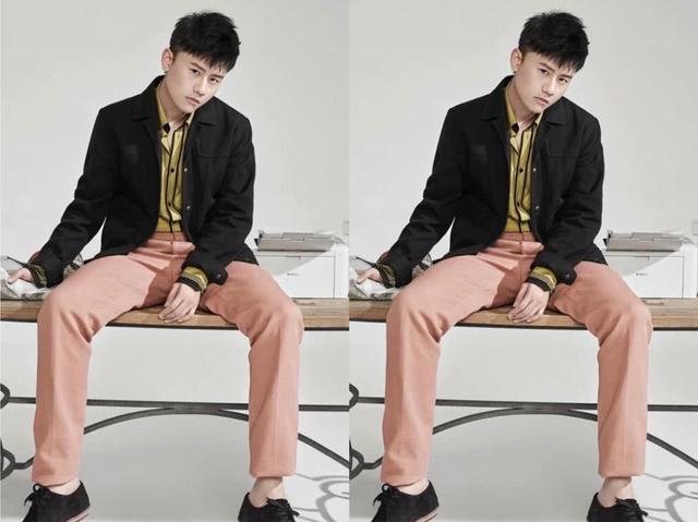 这身搭配大为不同呢,黑色外套内搭黄色衬衫,再搭配粉色长裤,脚踩黑色休闲鞋。整体造型轻松明快。
